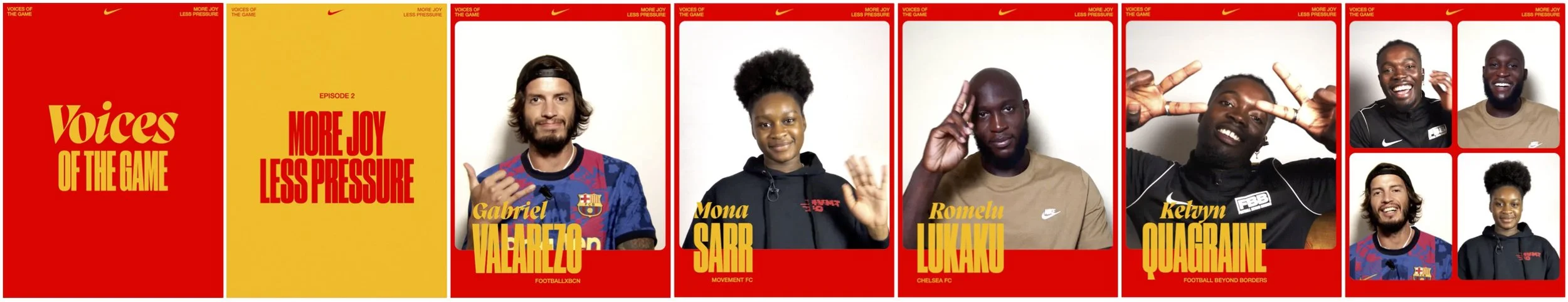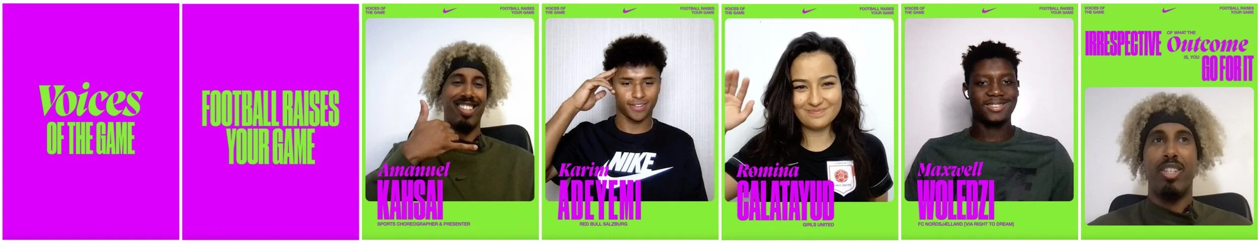 As part of Nike's ‘Land of New Football’ campaign for Euro 22, we created an editorial franchise that appeared in the Nike app called ‘The Huddle’. It celebrated the vast community of Nike-affiliated ballers who changing the game, making it more inclusive, diverse and joyful.
